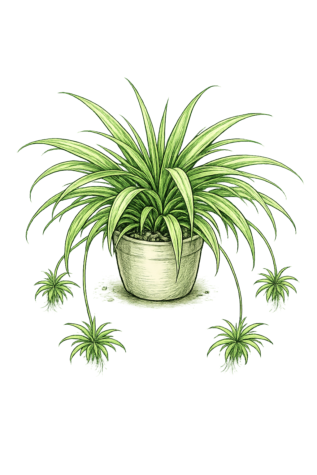 Mature plants produce trailing offshoots (“spider babies”), perfect for propagation.