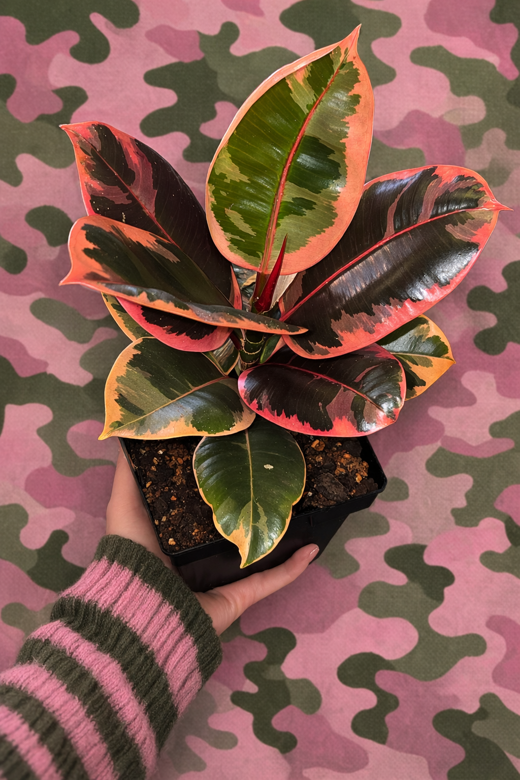 Every plant is slightly different. A ficus is as a ficus does. Some will have heavy variegation, some will have darker leaves, and some will throw surprise colours as they grow. That unpredictability is part of the charm.